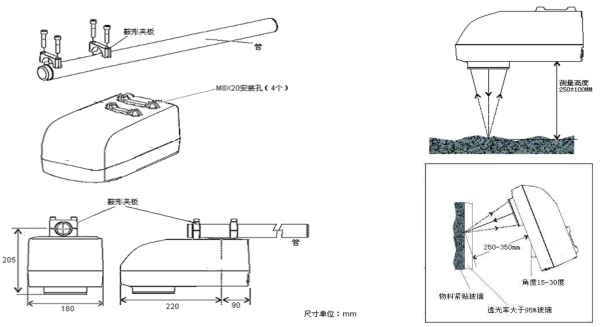 | 安裝支架 | 根據(jù)工況自行定制,安裝圓管直徑25-32mm |